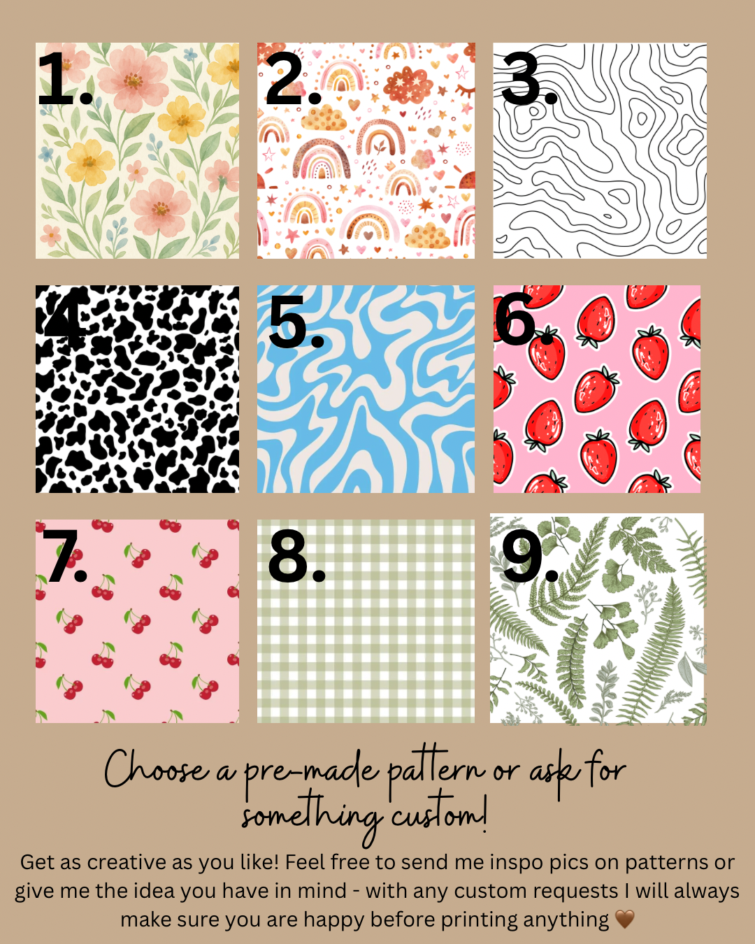 Choose a pattern from our premade selection OR