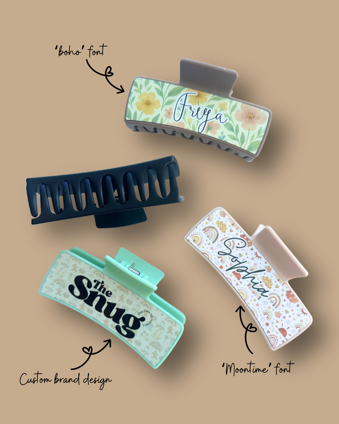 Say hello to your new favourite accessory our Custom Claw Clips are the perfect blend of style and function, designed especially for adding that personal touch to your daily look.
