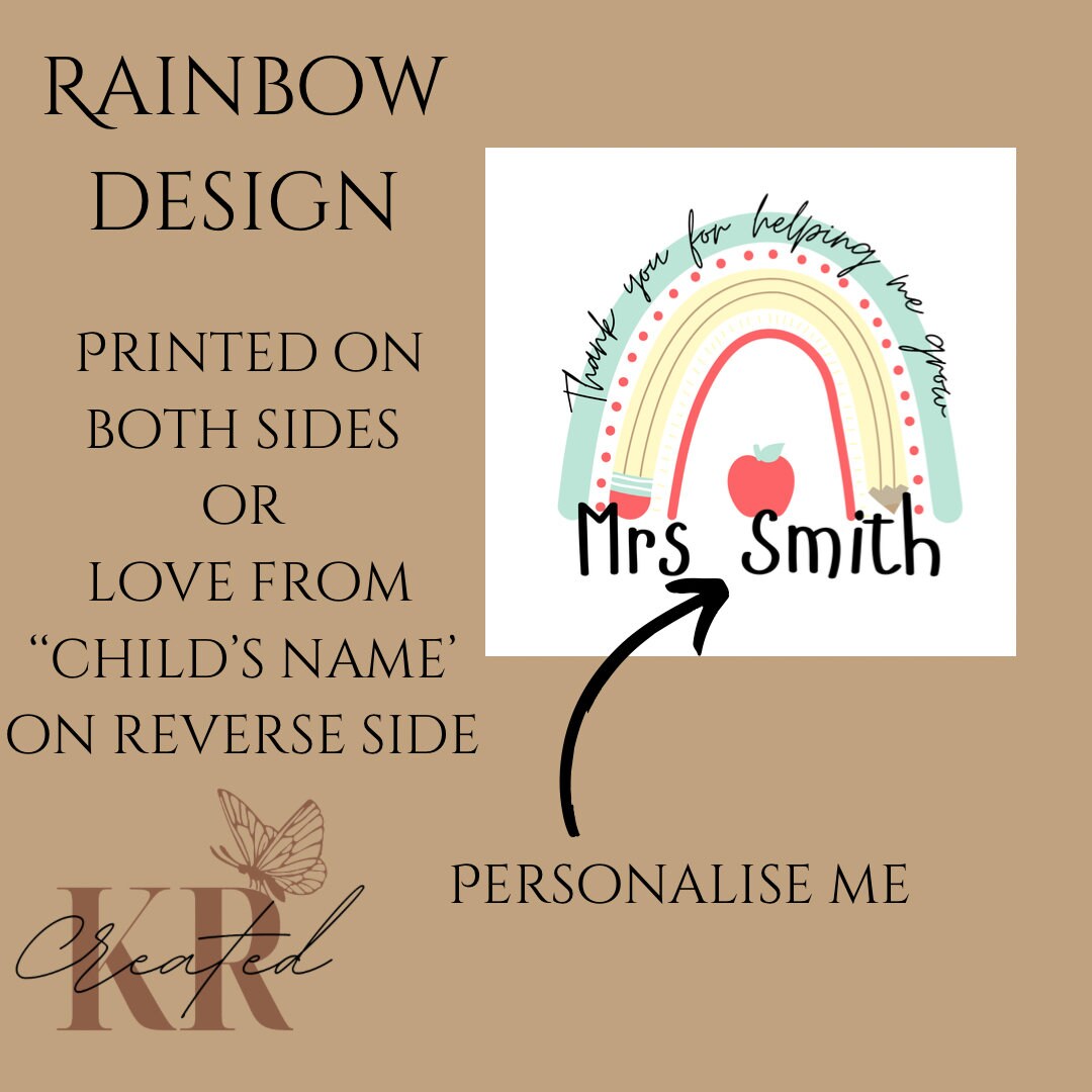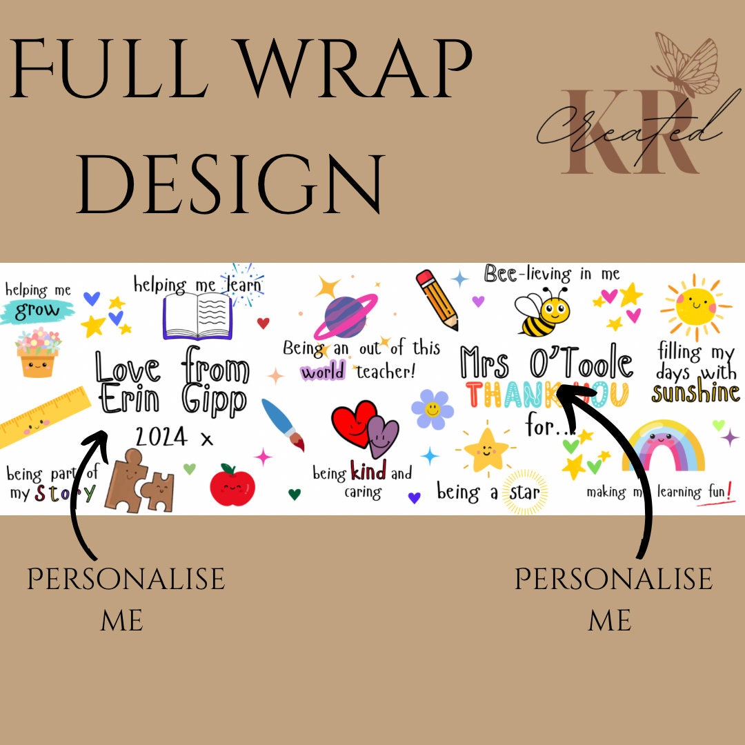 Two as some designs to thank any teacher in a special way. chose from either my teacher themed rainbow or the full wrap design and personalise how you want it!
